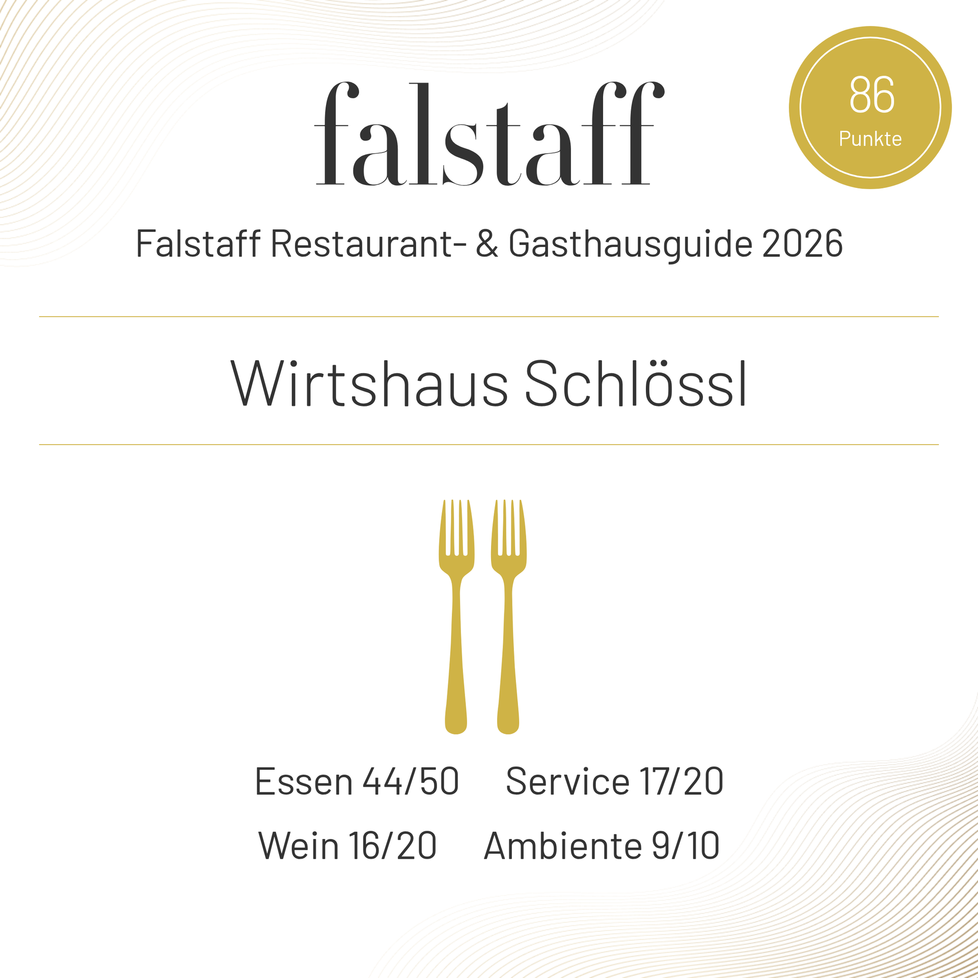 Falstaff bewertet jedes Jahr Österreichs beste Restaurants – und wir sind stolz, dabei zu sein. 86 Punkte und 2 Gabeln im Restaurant- & Gasthausguide 2026 zeigen, dass echte Wirtshausküche nach wie vor ihren Platz hat.